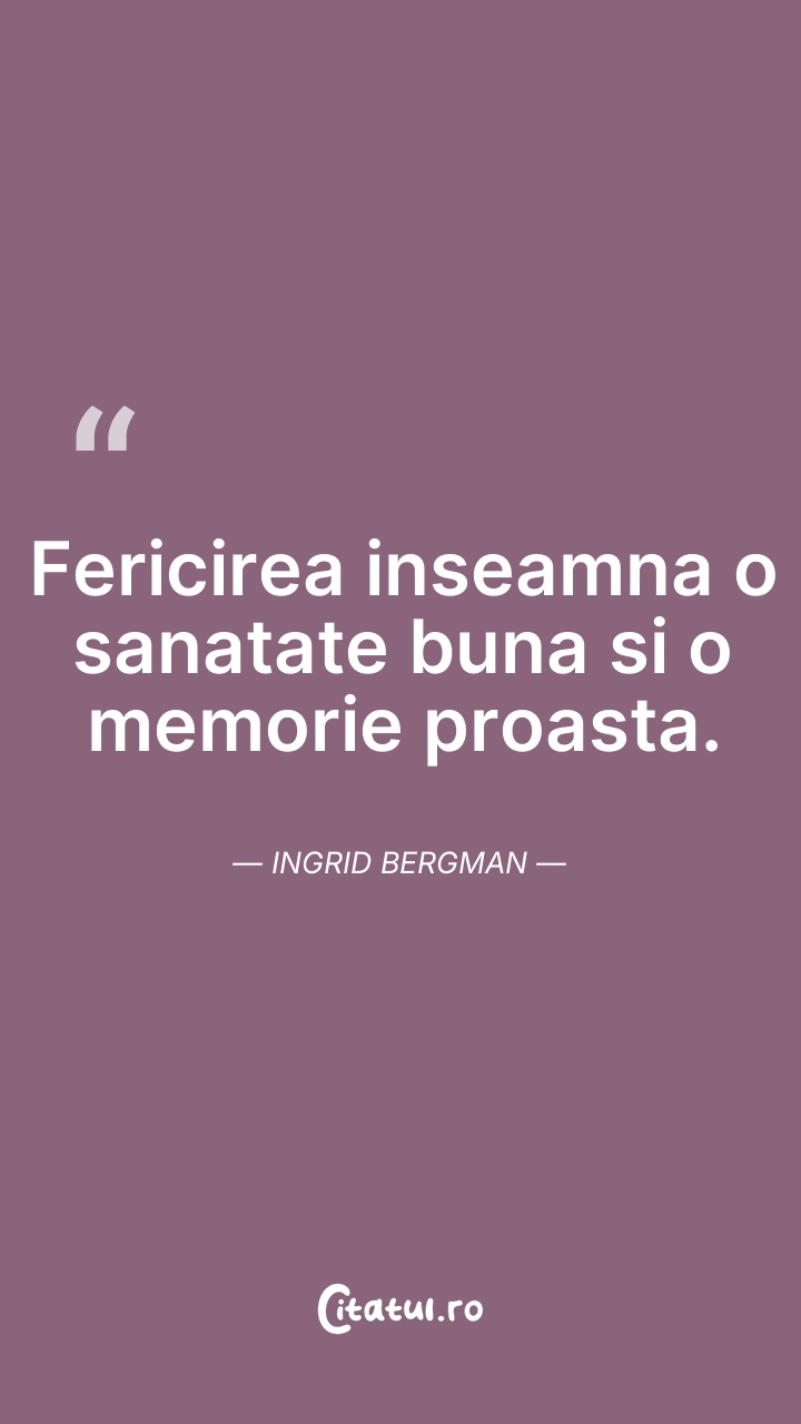 Fericirea inseamna o sanatate buna si o memor ... Citește tot citatul >