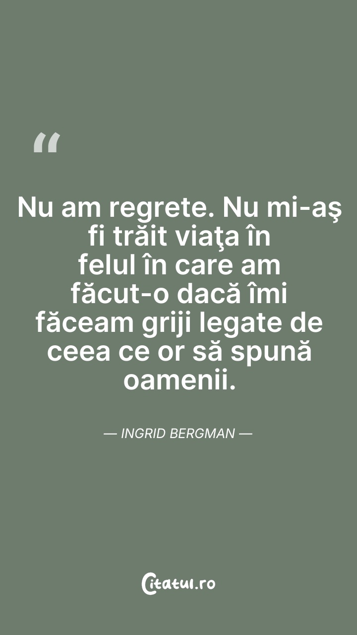 Nu am regrete. Nu mi-aş fi trăit viaţa în fel ... Citește tot citatul >