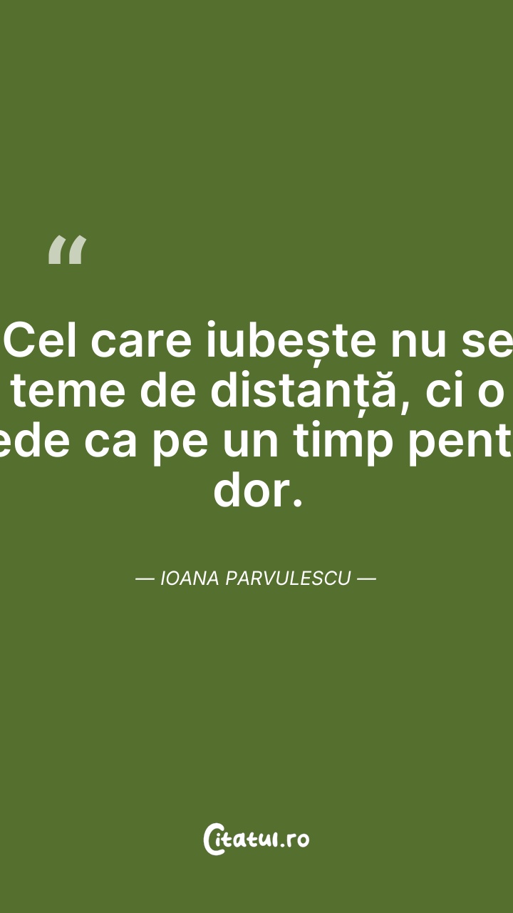 Cel care iubește nu se teme de distanță, ci o ... Citește tot citatul >
