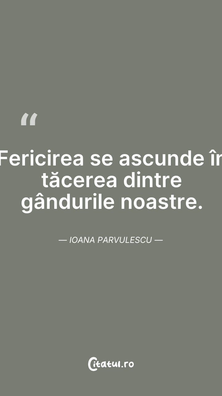 Fericirea se ascunde în tăcerea dintre gândur ... Citește tot citatul >