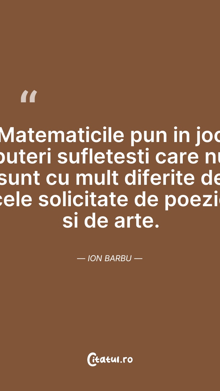 Matematicile pun in joc puteri sufletesti car ... Citește tot citatul >