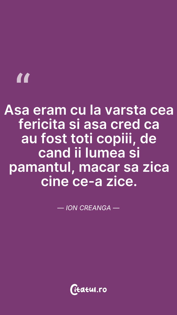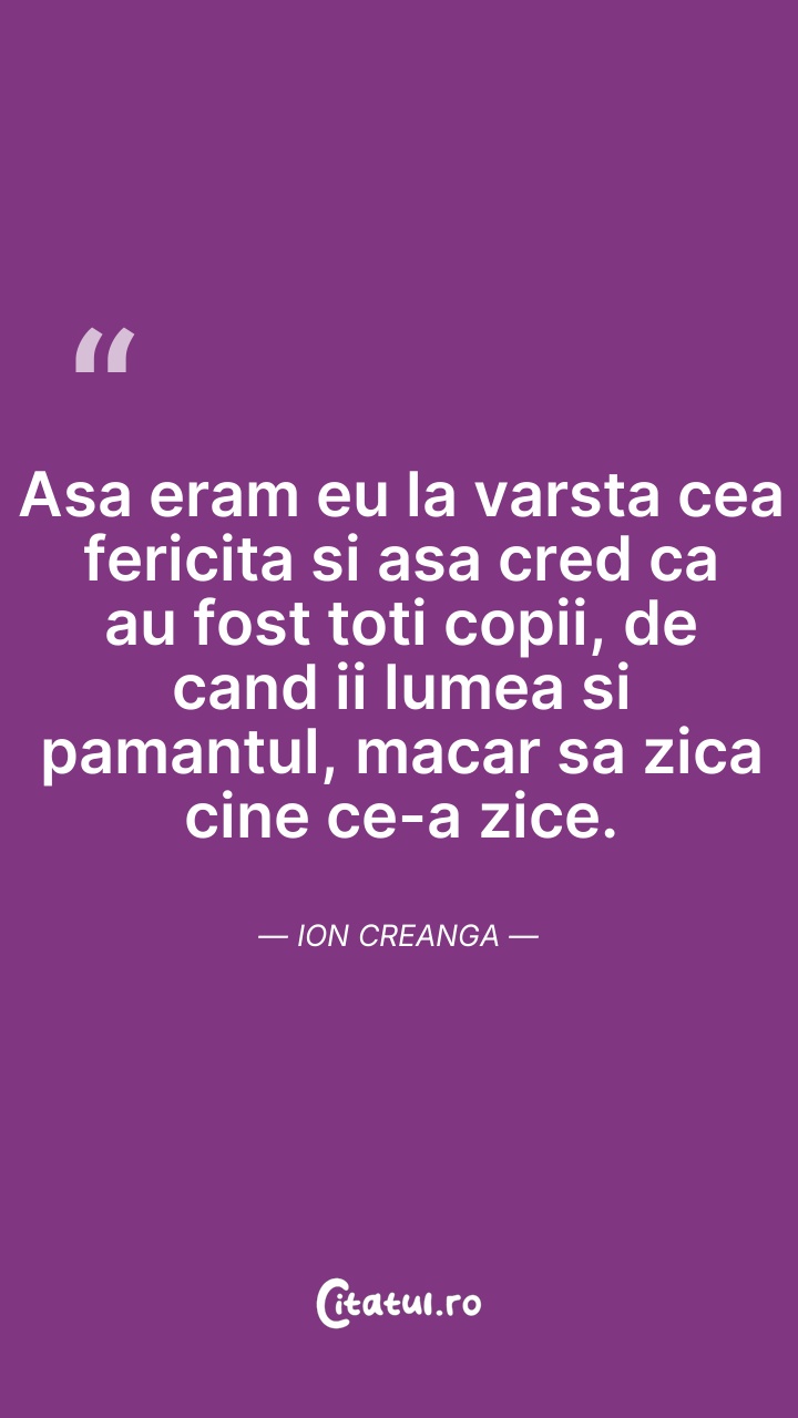 Ion Creangă a fost un scriitor, dascăl și diacon român. Figură principală a literaturii române din secolul al XIX-lea, este cunoscut pentru autobiografia Amintiri din copilărie, precum și pentru nuvelele și povestirile sale. Principala contribuție a lui Creangă la literatura fantastică și pentru copii include narațiuni structurate în jurul unor protagoniști eponimi, precum și basme ce pictează tabloul valorilor autohtone. Considerate pe scară largă drept capodopere ale limbii și umorului românesc, scrierile sale ocupă o poziție de mijloc între o culegere din surse folclorice și o contribuție originală la un realism literar de inspirație rurală.