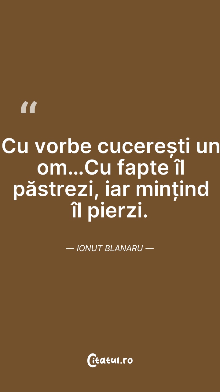 Cu vorbe cucerești un om…Cu fapte îl păstrezi ... Citește tot citatul >
