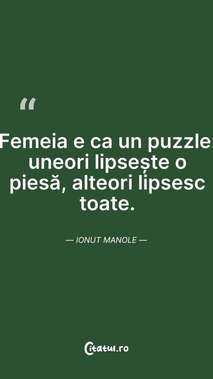 Femeia e ca un puzzle: uneori lipsește o pies ... Citește tot citatul >