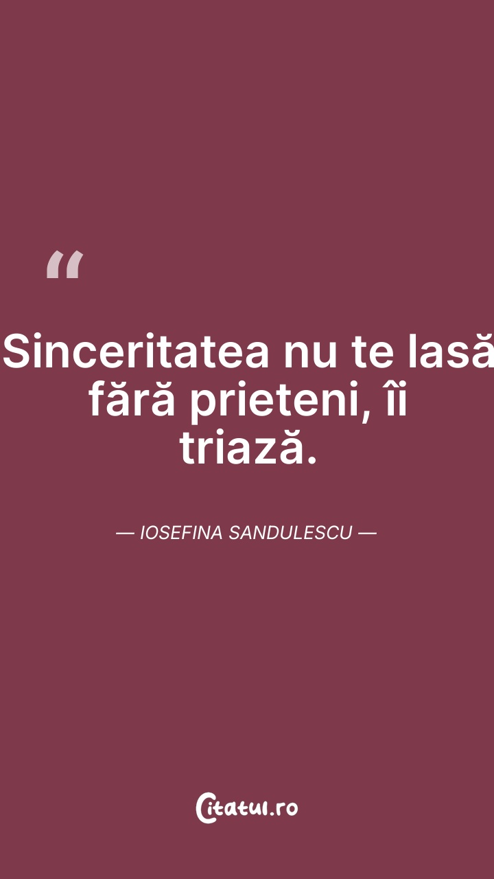 Sinceritatea nu te lasă fără prieteni, îi tri ... Citește tot citatul >