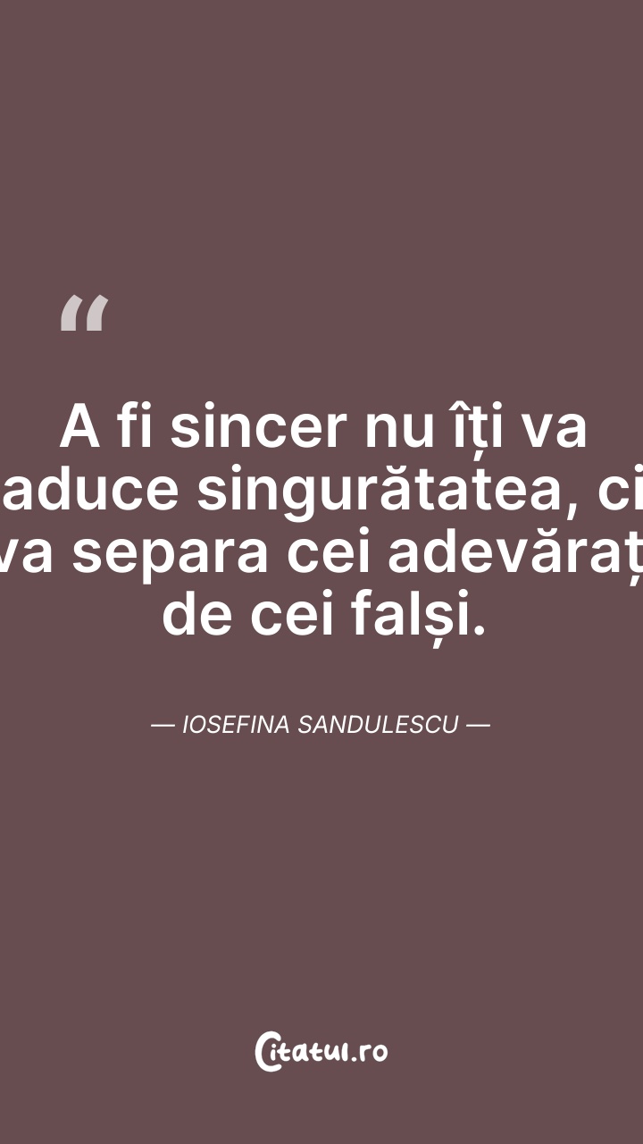 A fi sincer nu îți va aduce singurătatea, ci ... Citește tot citatul >