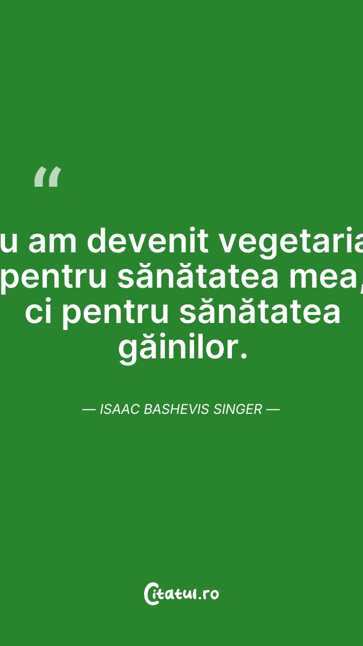Nu am devenit vegetarian pentru sănătatea mea ... Citește tot citatul >
