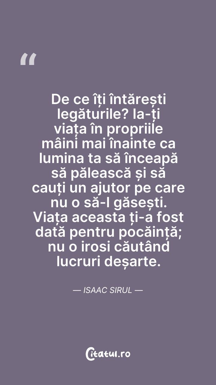 De ce îți întărești legăturile? Ia-ți viața î ... Citește tot citatul >
