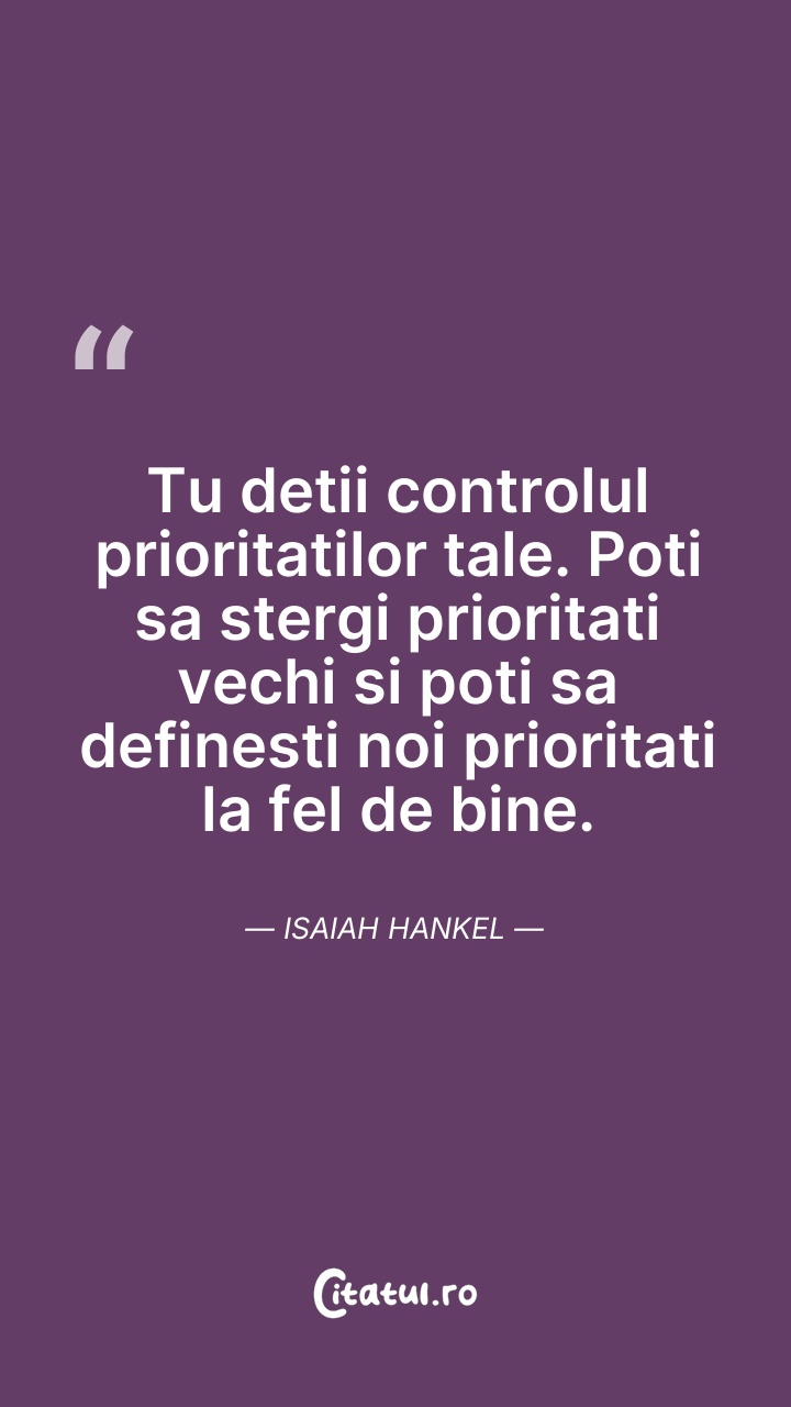 Tu detii controlul prioritatilor tale. Poti s ... Citește tot citatul >