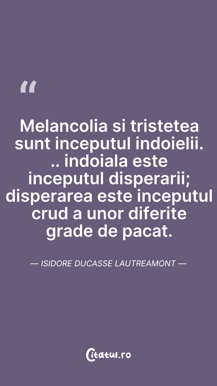 Melancolia si tristetea sunt inceputul indoie ... Citește tot citatul >