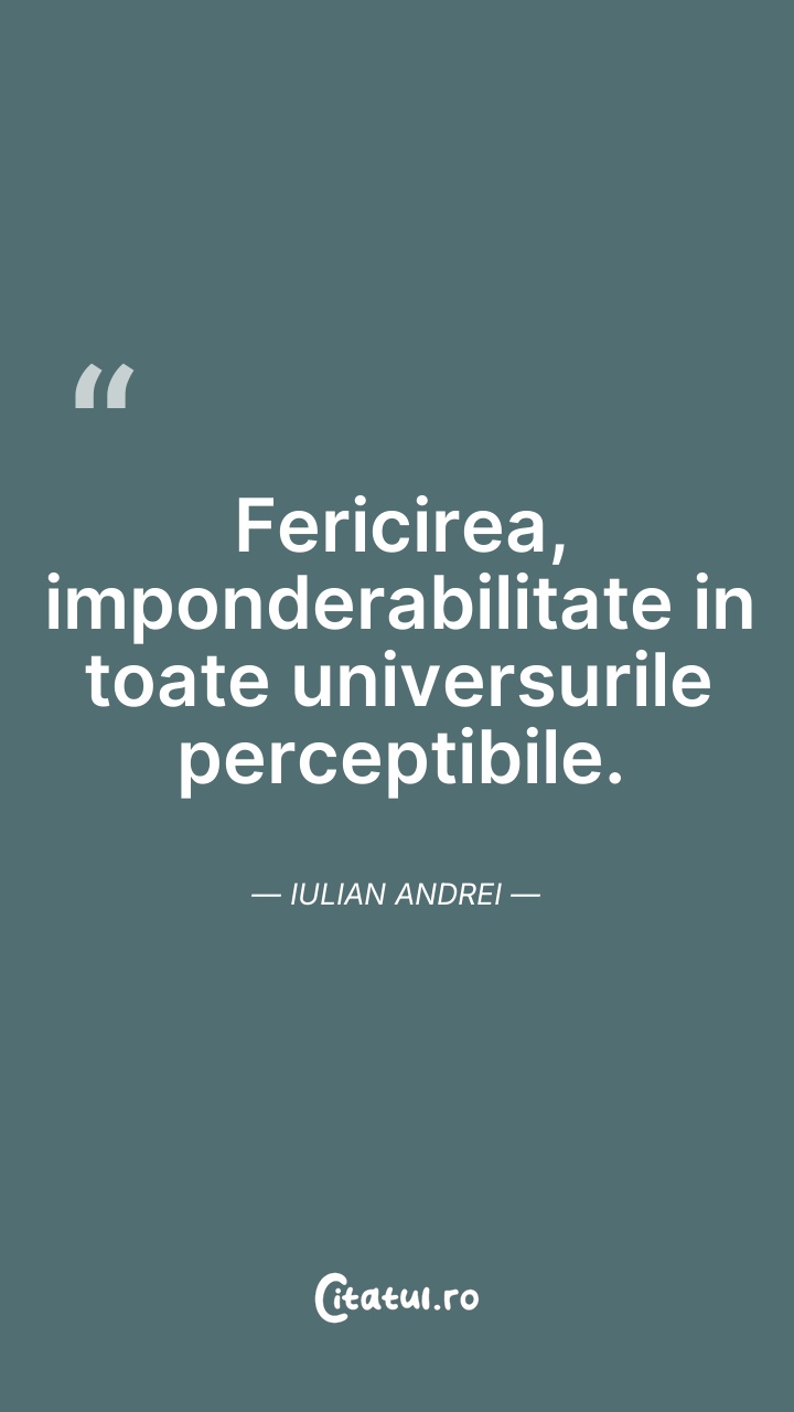 Fericirea, imponderabilitate in toate univers ... Citește tot citatul >