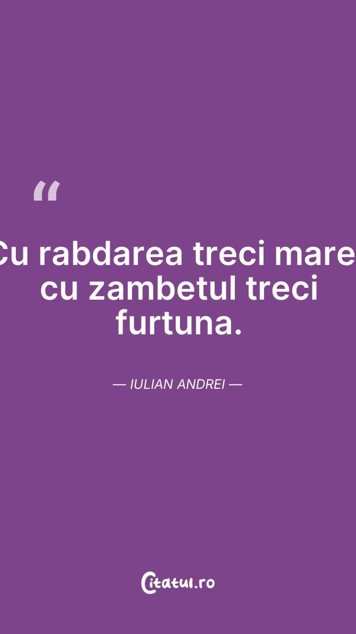 Cu rabdarea treci marea cu zambetul treci fur ... Citește tot citatul >