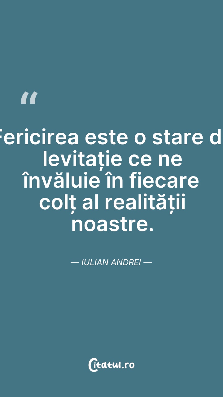 Fericirea este o stare de levitație ce ne înv ... Citește tot citatul >