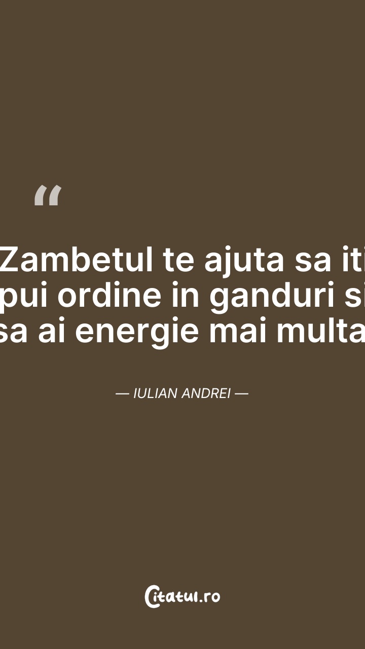 Zambetul te ajuta sa iti pui ordine in gandur ... Citește tot citatul >