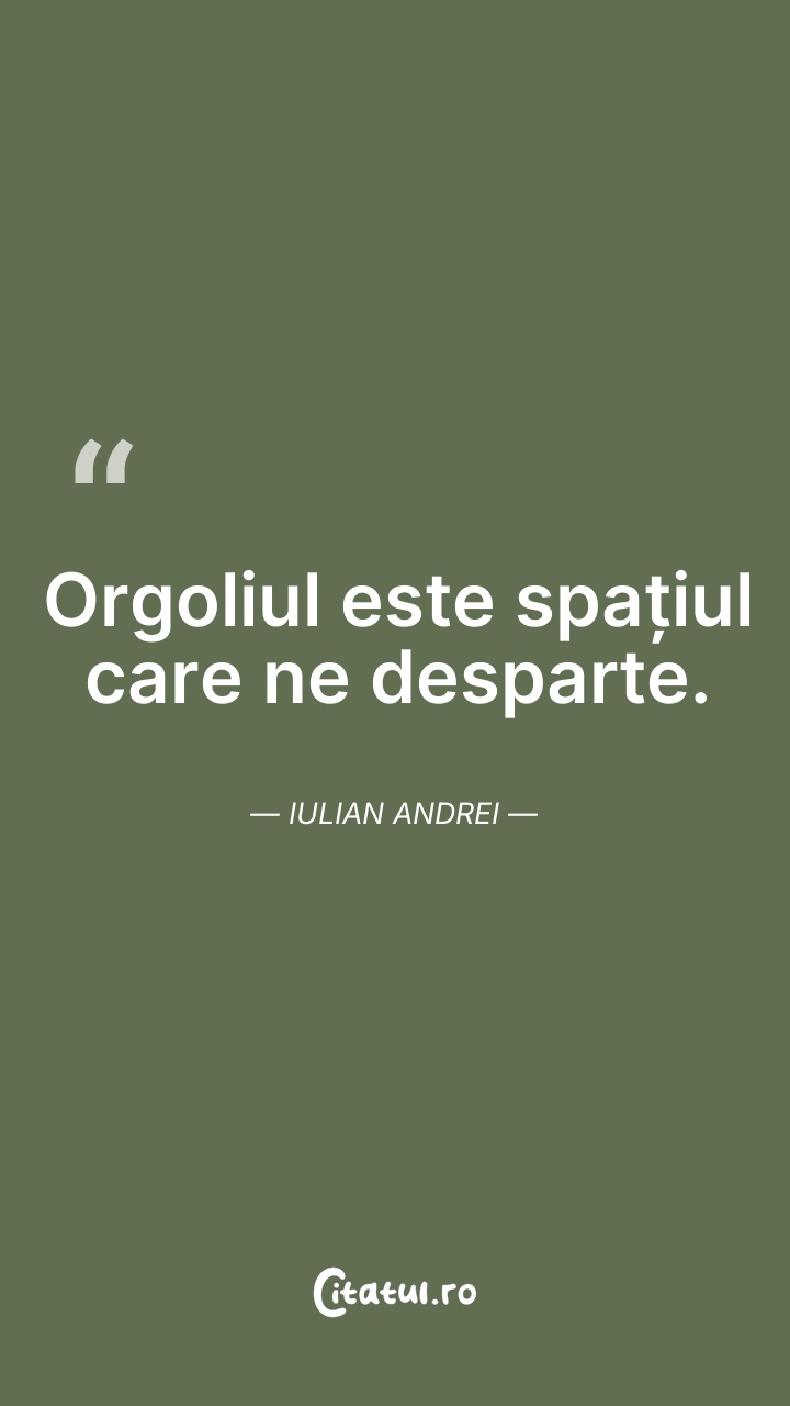 Orgoliul este spațiul care ne desparte. Iulia ... Citește tot citatul >
