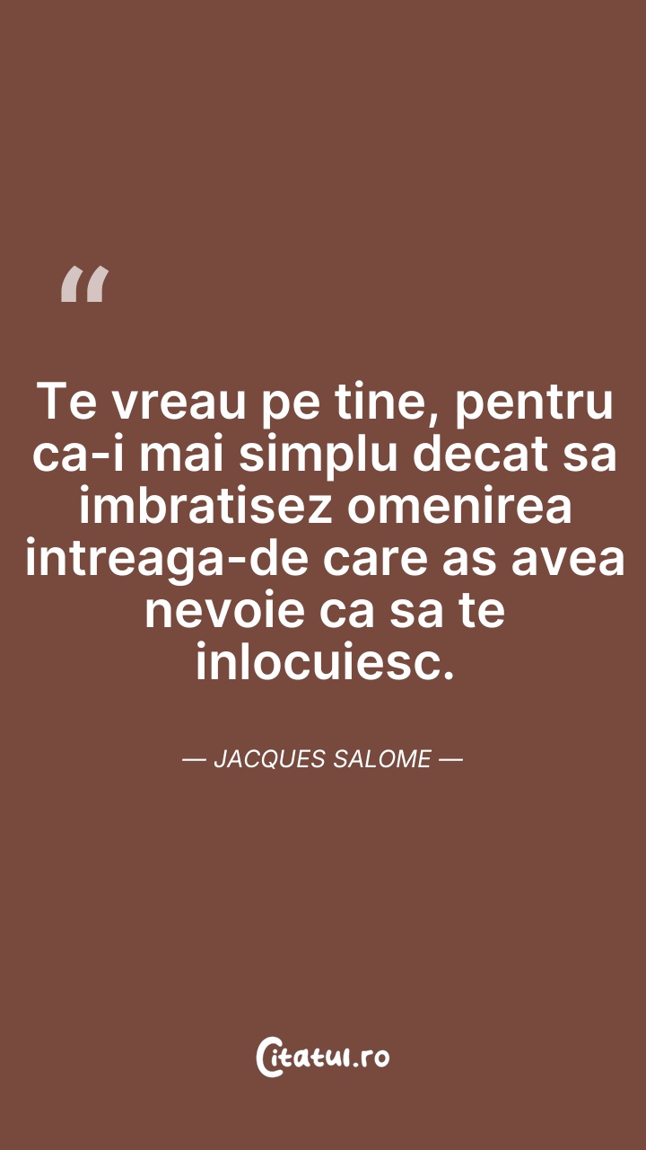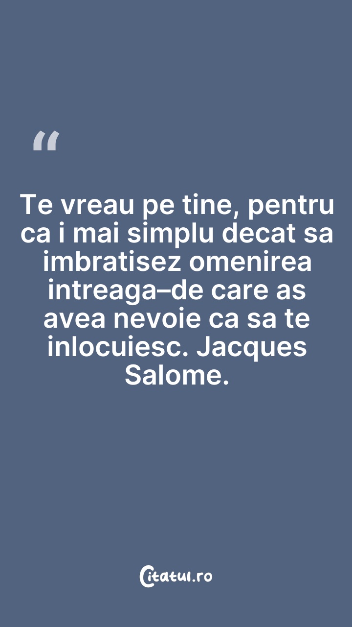 Te vreau pe tine, pentru ca-i mai simplu deca ... Citește tot citatul >