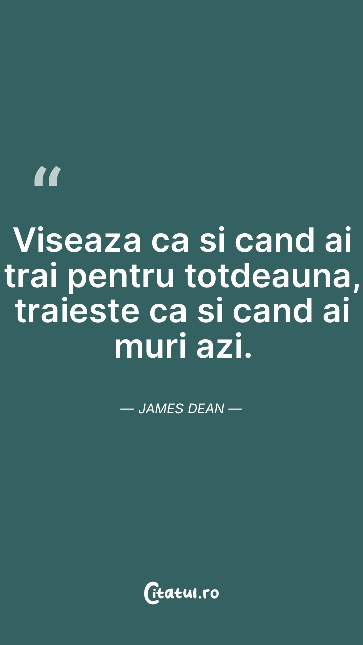 Viseaza ca si cand ai trai pentru totdeauna, ... Citește tot citatul >