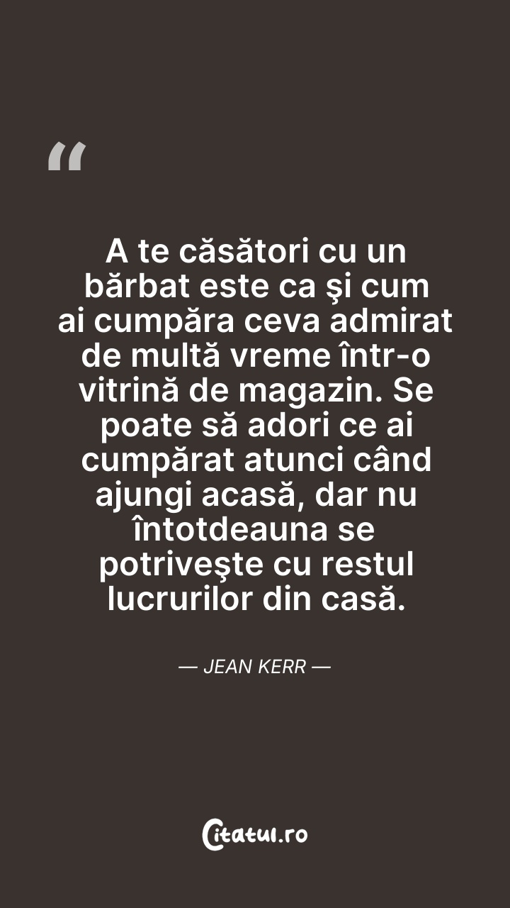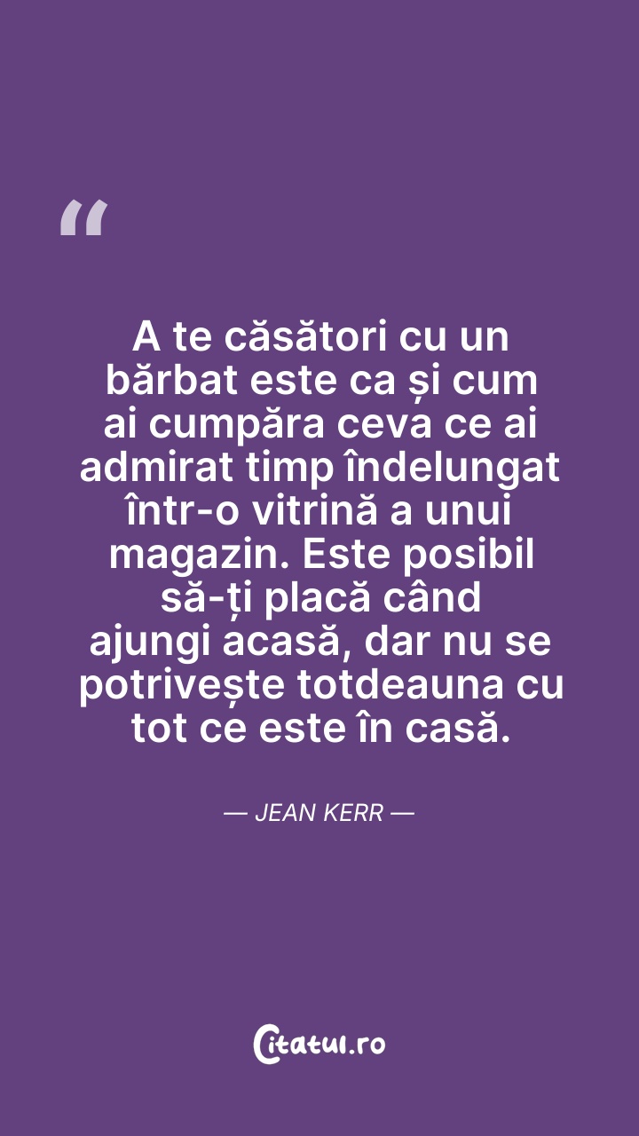 A te căsători cu un bărbat este ca şi cum ai ... Citește tot citatul >