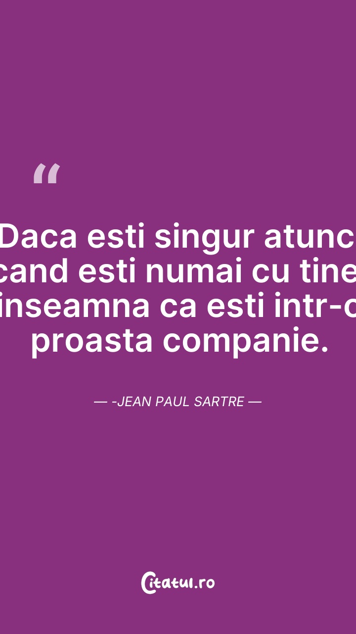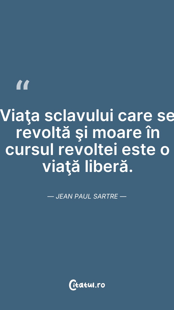 Jean-Paul Sartre a fost un filozof francez, reprezentant al existențialismului, scriitor, jurnalist și militant social. A influențat profund generația care i-a urmat, în special tineretul din perioada de după cel de-al Doilea Război Mondial, nu doar prin filozofia și opera sa literară, ci mai ales ca intelectual angajat. Diversele sale angajamente sociale sunt inseparabile de gândirea sa filozofică. În anul 1964 i s-a acordat Premiul Nobel pentru Literatură, dar acesta a refuzat.
