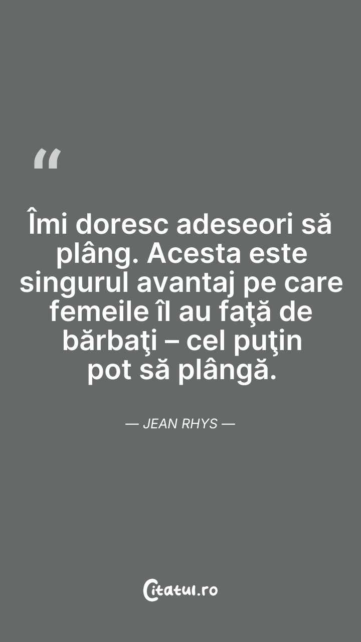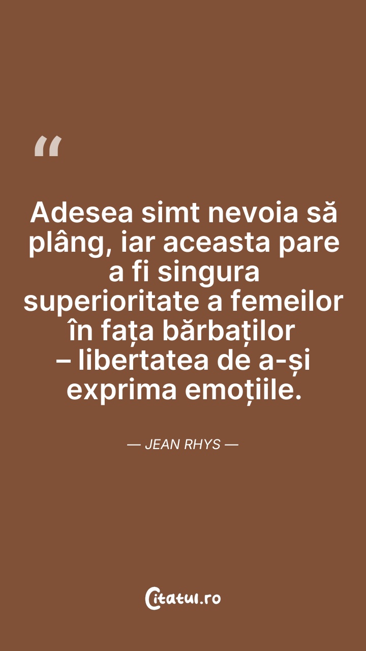 Adesea simt nevoia să plâng, iar aceasta pare ... Citește tot citatul >