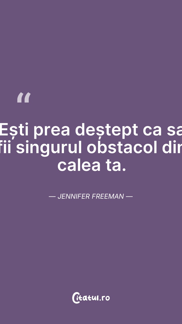 Ești prea deștept ca sa fii singurul obstacol ... Citește tot citatul >