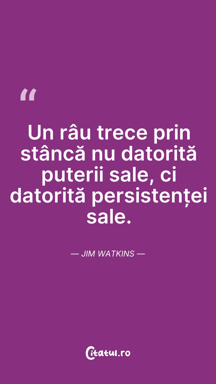 Un râu trece prin stâncă nu datorită puterii ... Citește tot citatul >