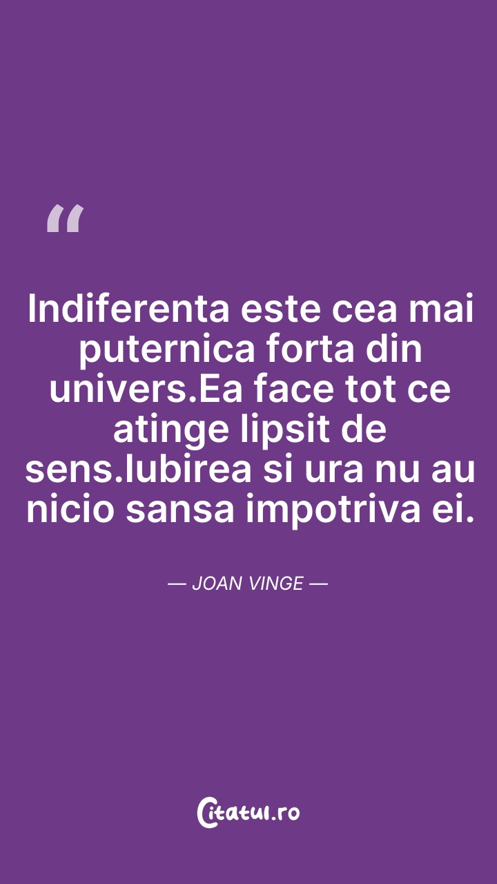 Indiferenta este cea mai puternica forta din ... Citește tot citatul >