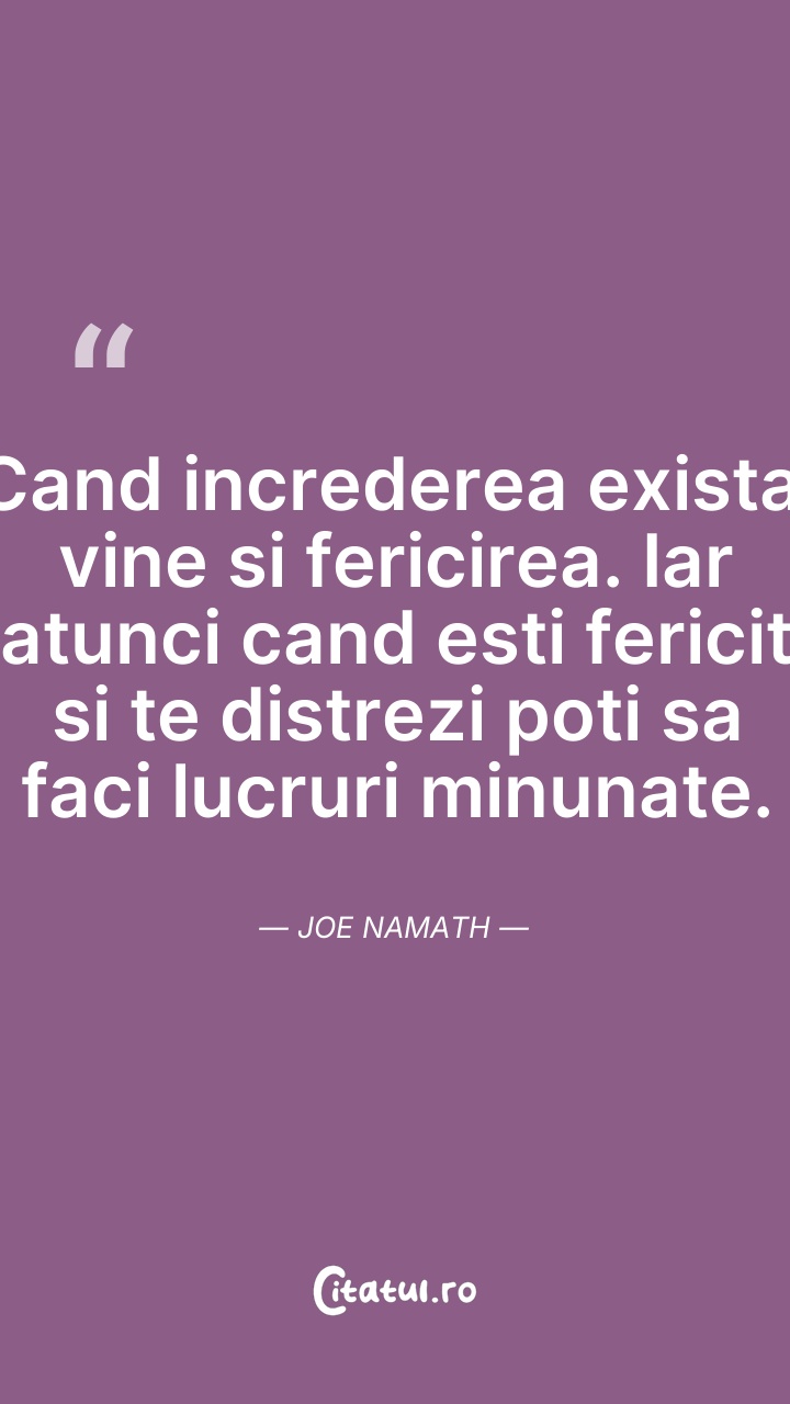 Cand increderea exista, vine si fericirea. Ia ... Citește tot citatul >