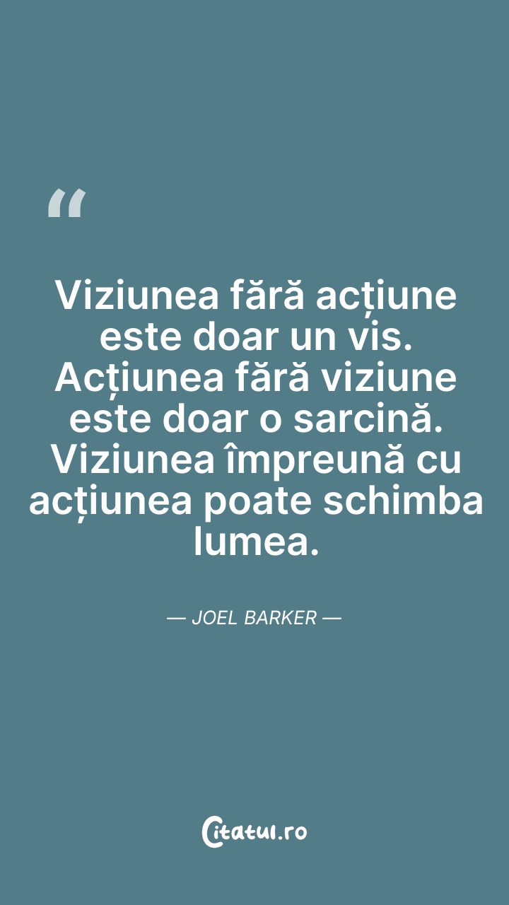 Viziunea fără acțiune este doar un vis. Acțiu ... Citește tot citatul >