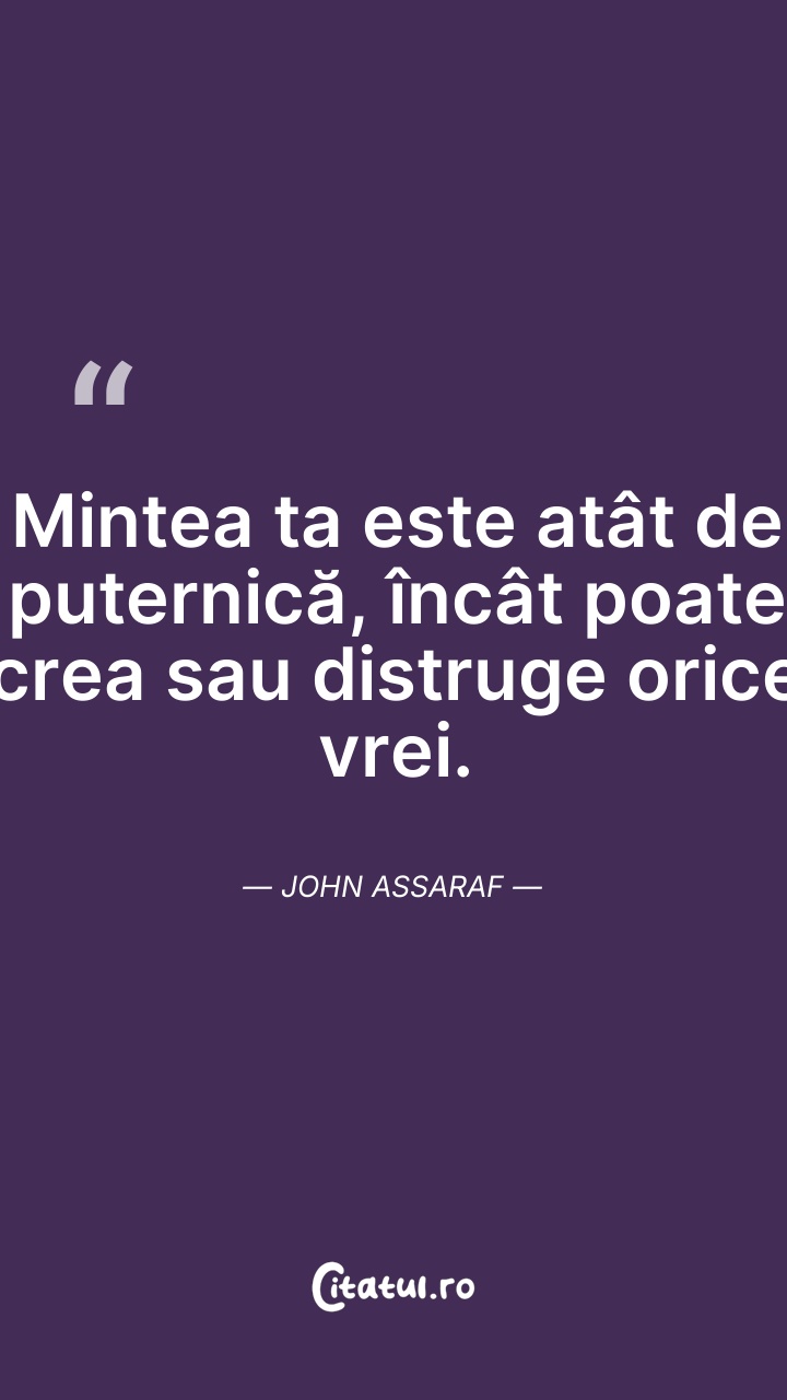 Mintea ta este atât de puternică, încât poate ... Citește tot citatul >