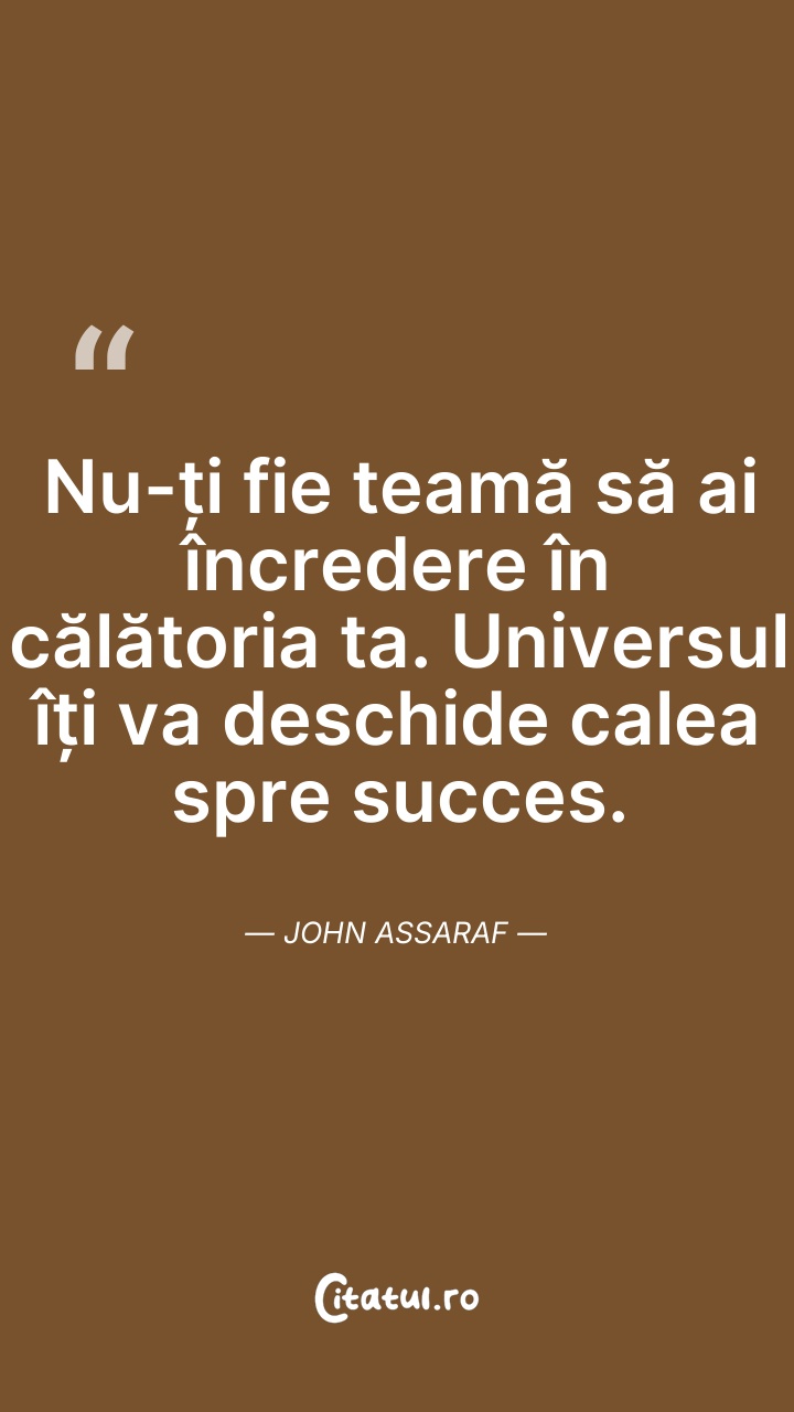 Nu-ți fie teamă să ai încredere în călătoria ... Citește tot citatul >