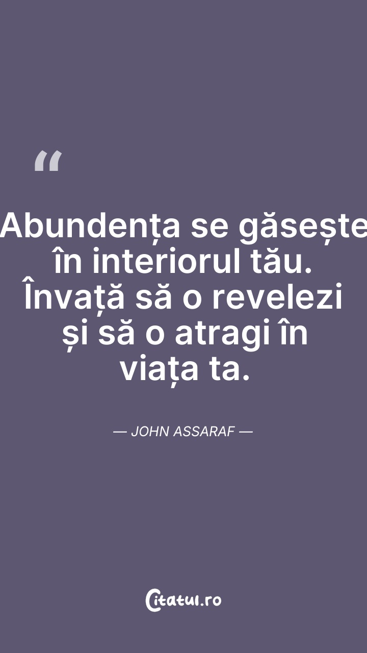 Abundența se găsește în interiorul tău. Învaț ... Citește tot citatul >