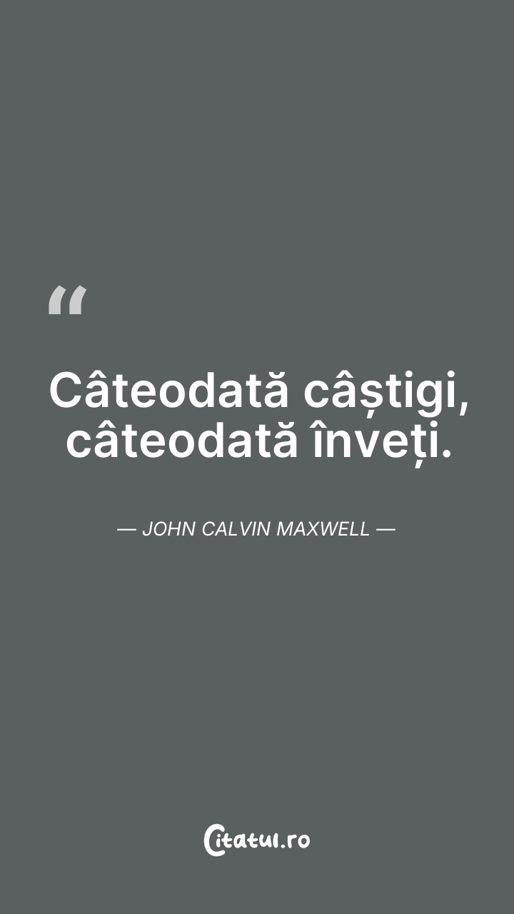 Câteodată câștigi, câteodată înveți. John Cal ... Citește tot citatul >
