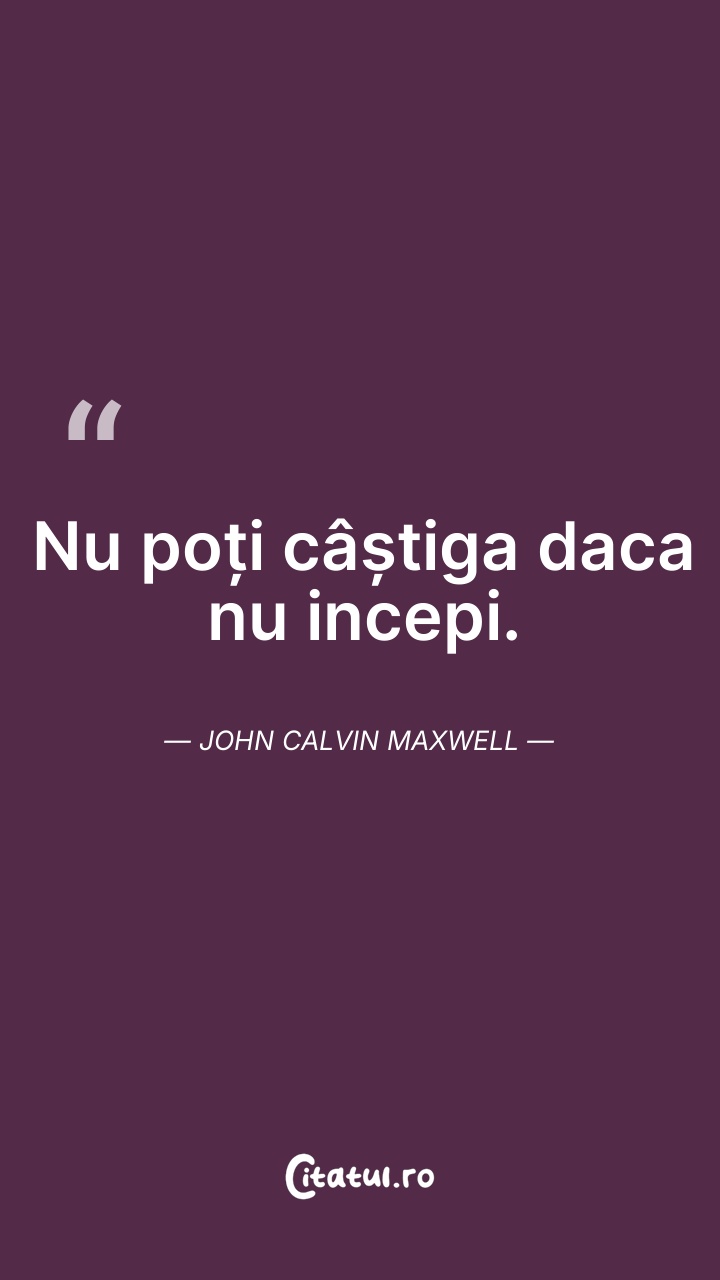 Nu poți câștiga daca nu incepi. John Calvin M ... Citește tot citatul >