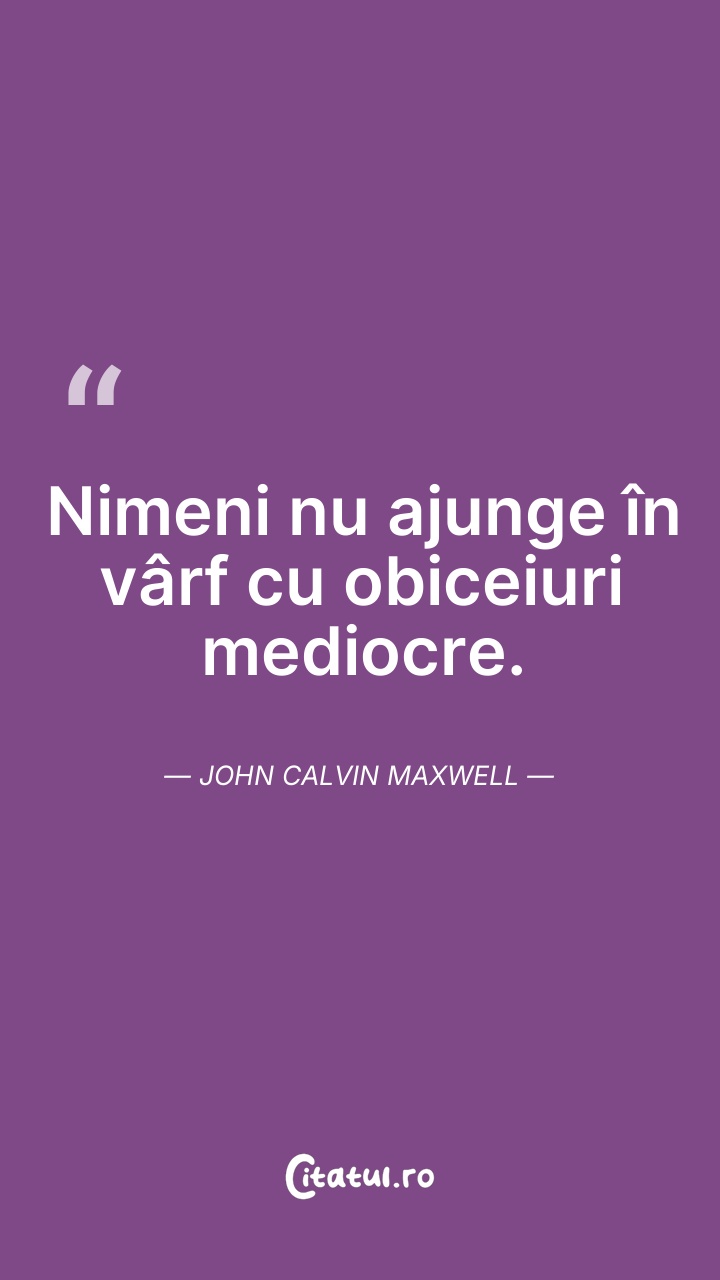 Nimeni nu ajunge în vârf cu obiceiuri mediocr ... Citește tot citatul >