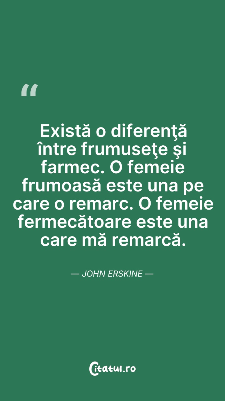 Există o diferenţă între frumuseţe şi farmec. ... Citește tot citatul >