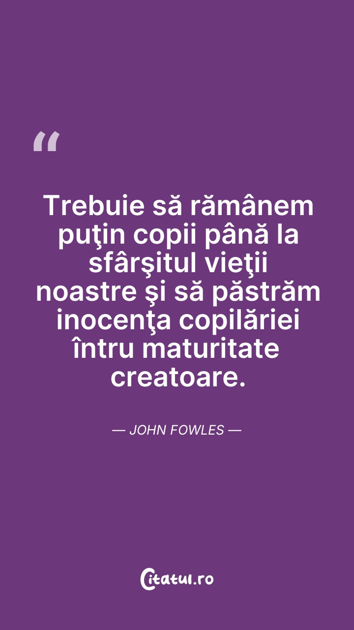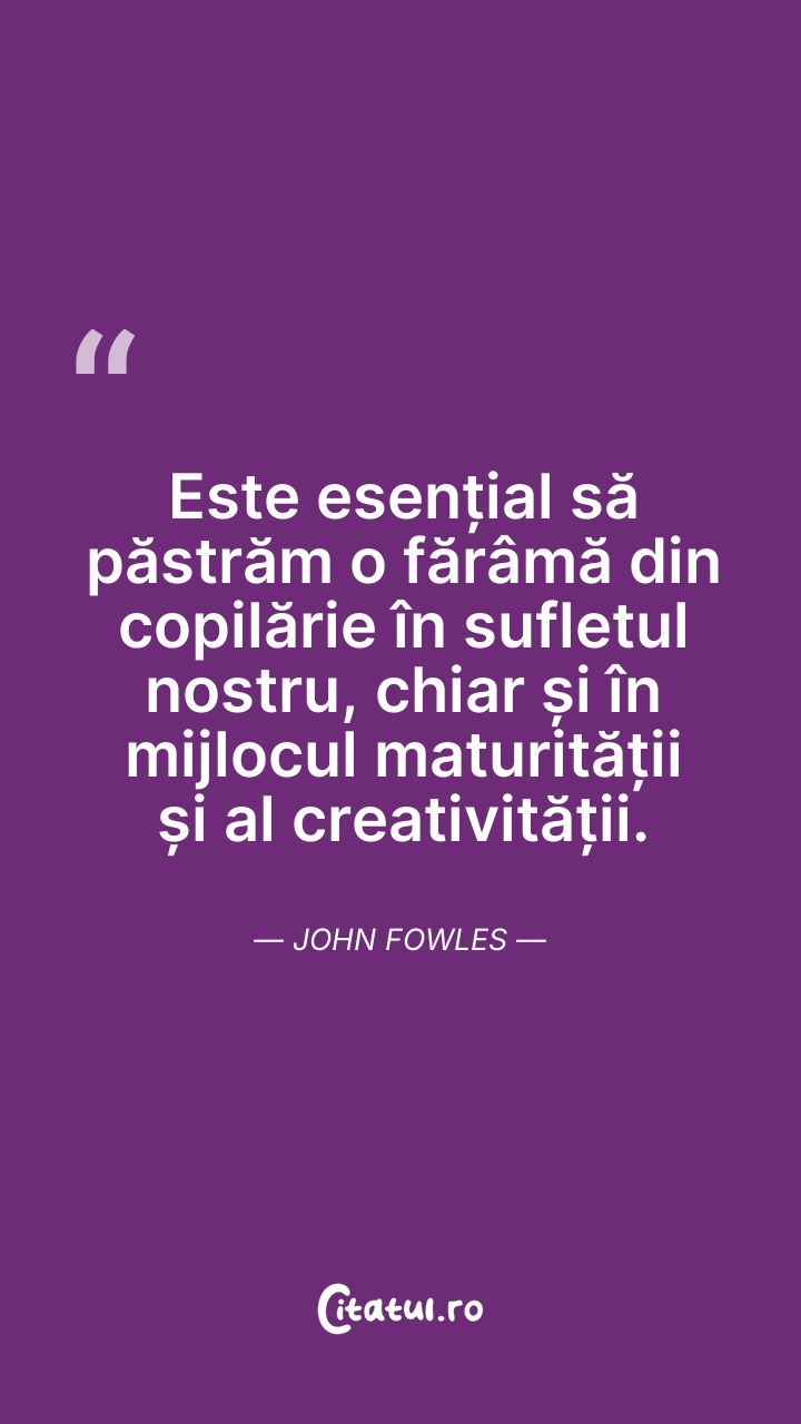 Este esențial să păstrăm o fărâmă din copilăr ... Citește tot citatul >