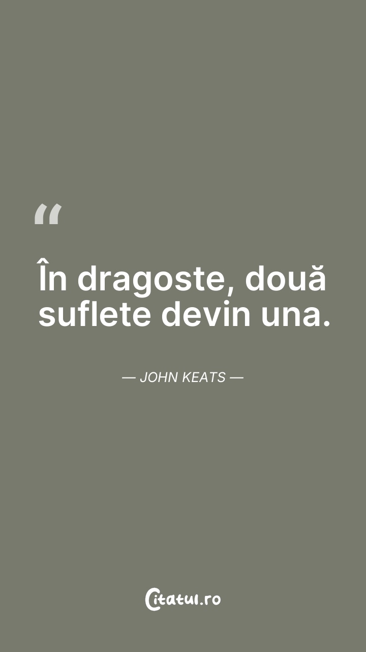 În dragoste, două suflete devin una. John Kea ... Citește tot citatul >