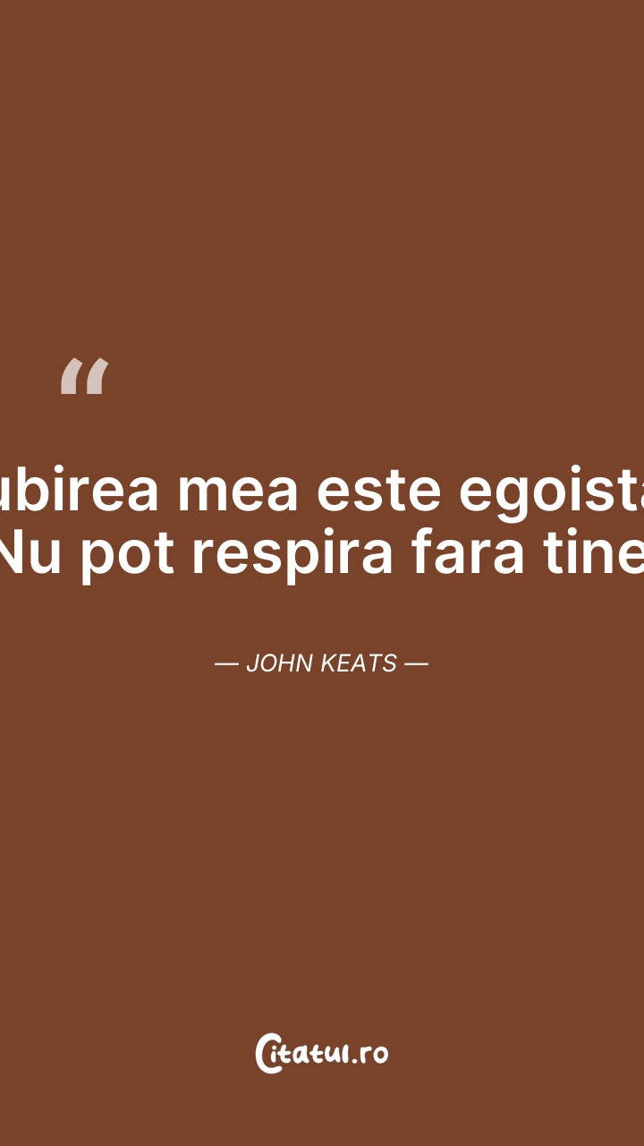 Iubirea mea este egoista. Nu pot respira fara ... Citește tot citatul >