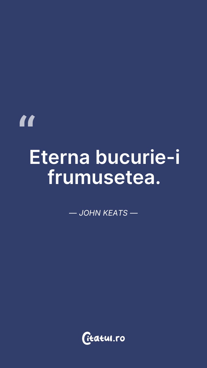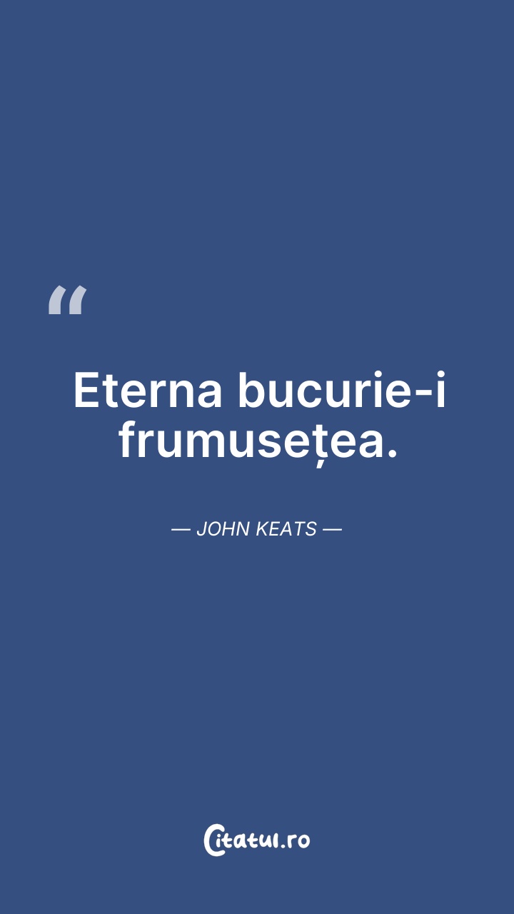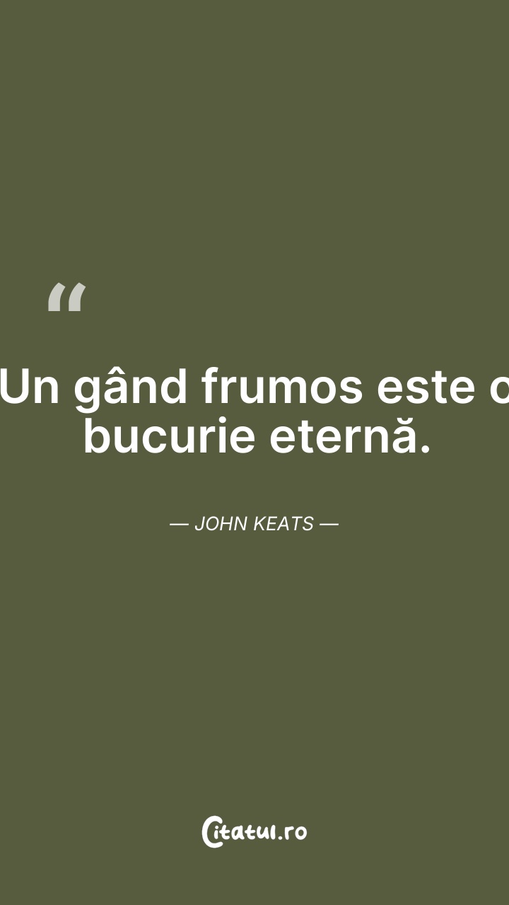 Un gând frumos este o bucurie eternă. John Ke ... Citește tot citatul >