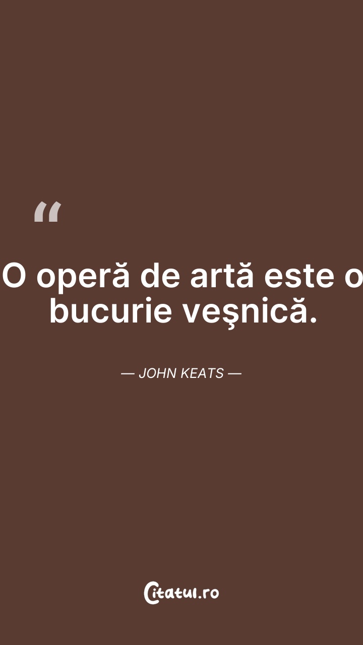 O operă de artă este o bucurie veşnică. John ... Citește tot citatul >