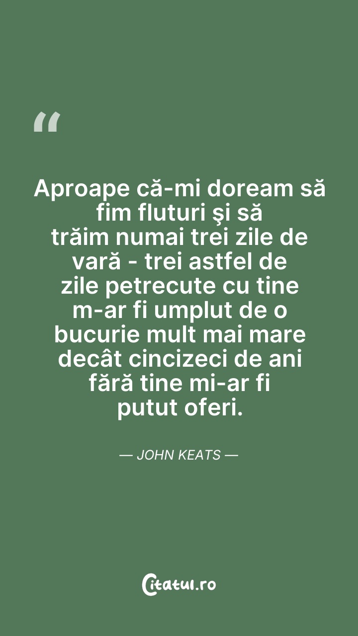 Aproape că-mi doream să fim fluturi şi să tră ... Citește tot citatul >