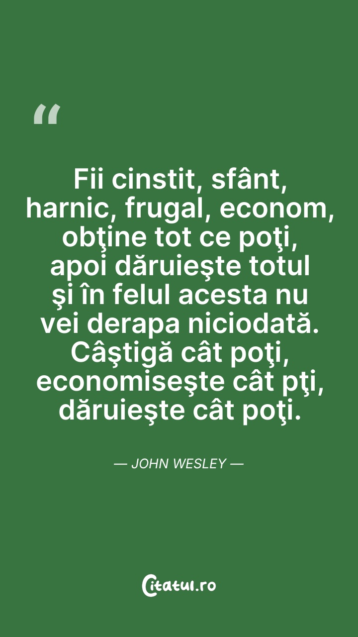 Fii cinstit, sfânt, harnic, frugal, econom, o ... Citește tot citatul >