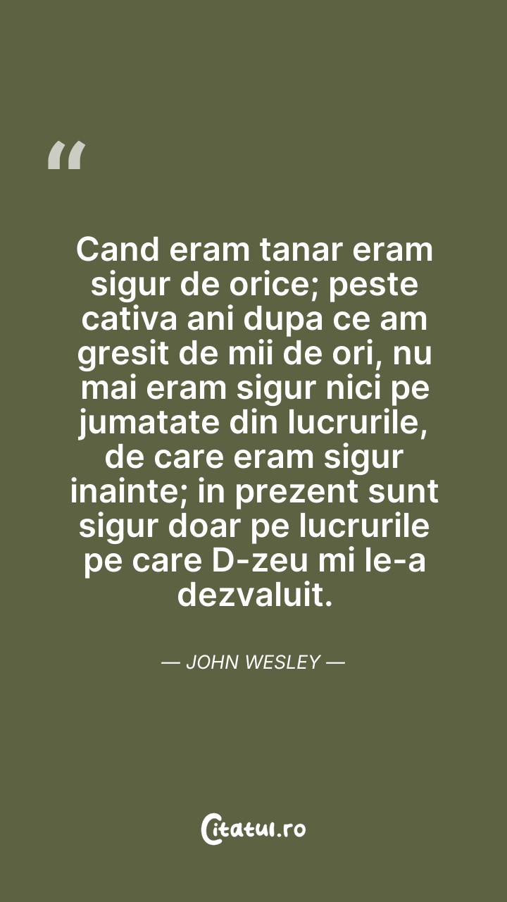 Cand eram tanar eram sigur de orice; peste ca ... Citește tot citatul >