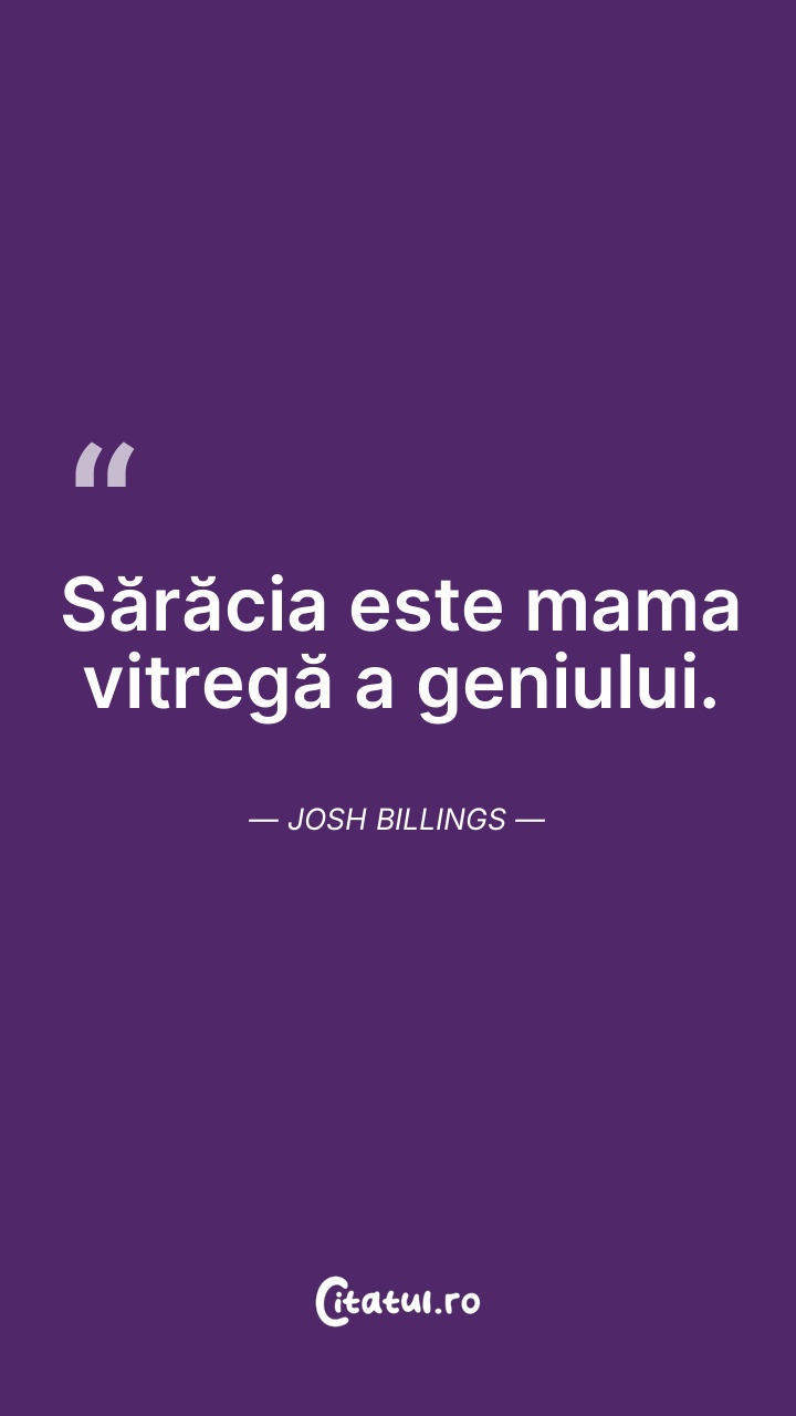 Sărăcia este mama vitregă a geniului. Josh Bi ... Citește tot citatul >