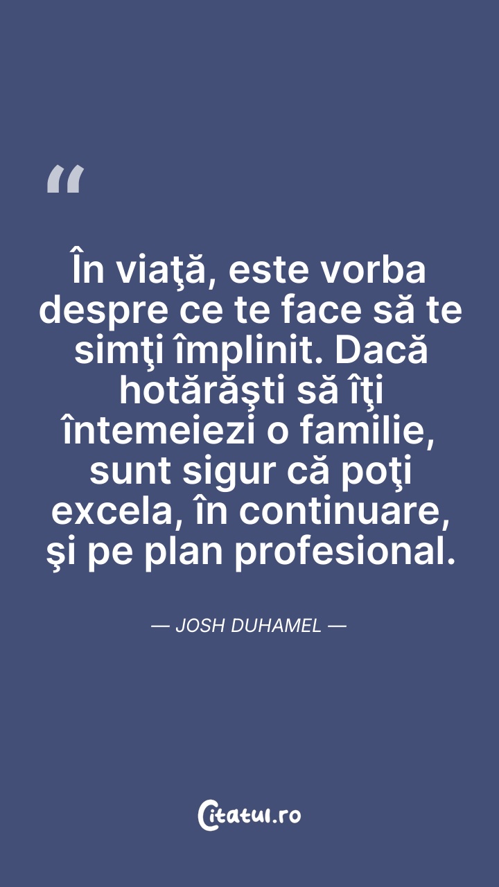 Viața se axează pe împlinire, iar dacă alegi ... Citește tot citatul >