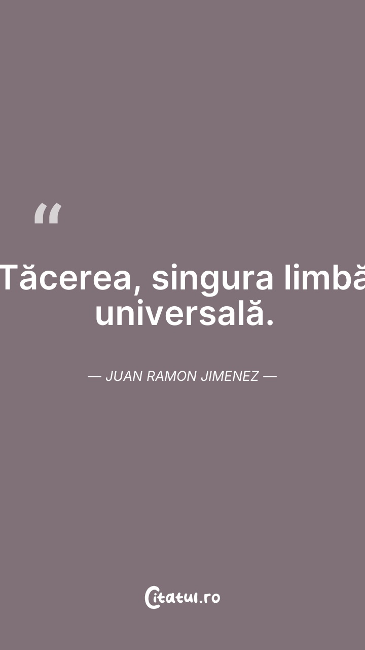 Tăcerea, singura limbă universală. Juan Ramon ... Citește tot citatul >