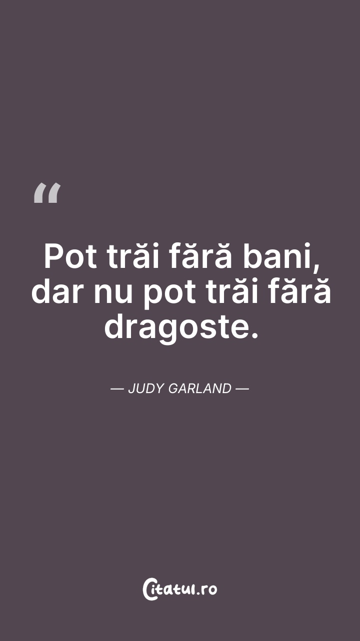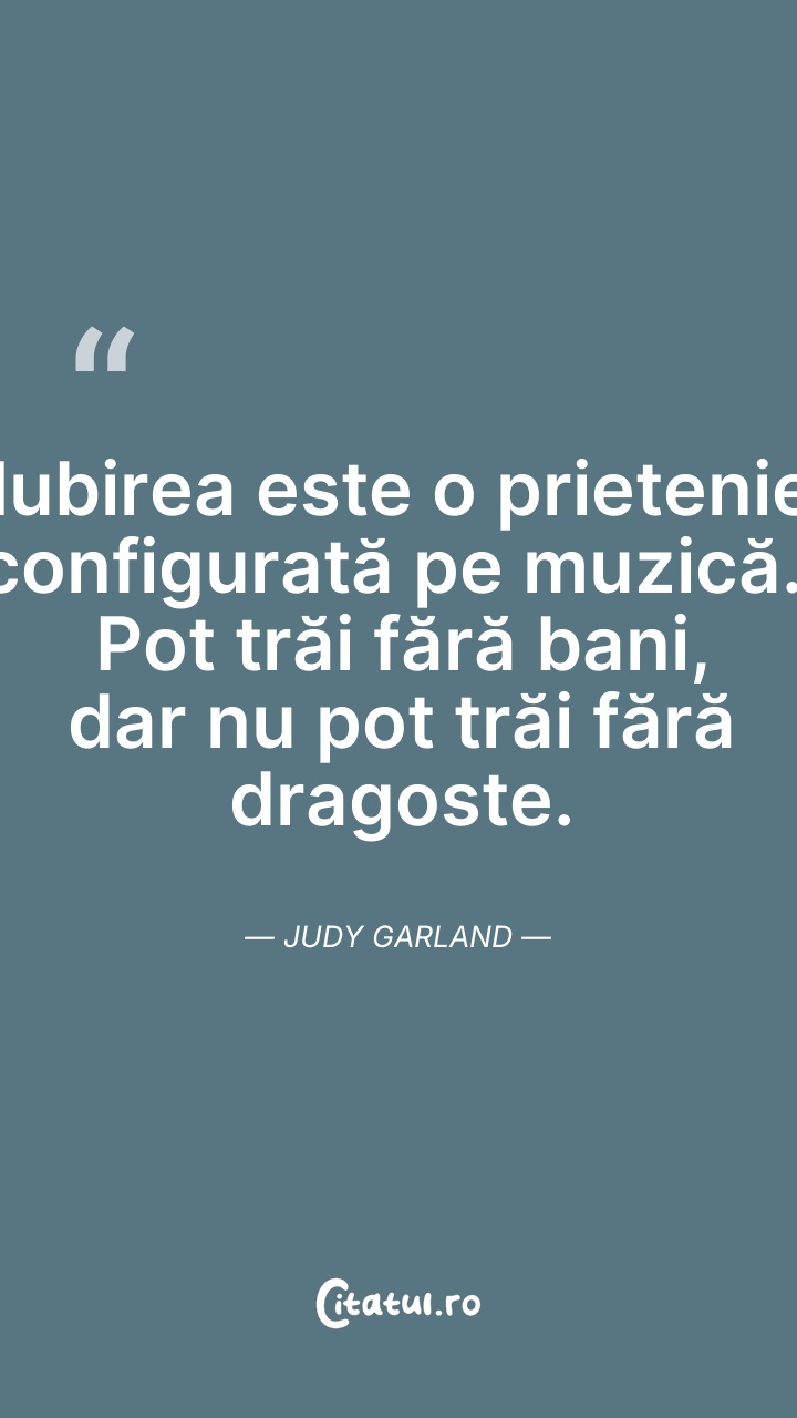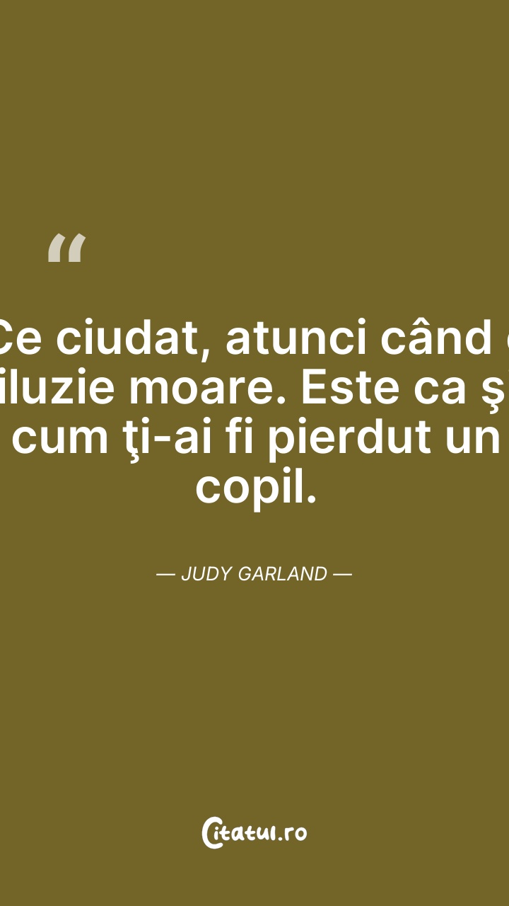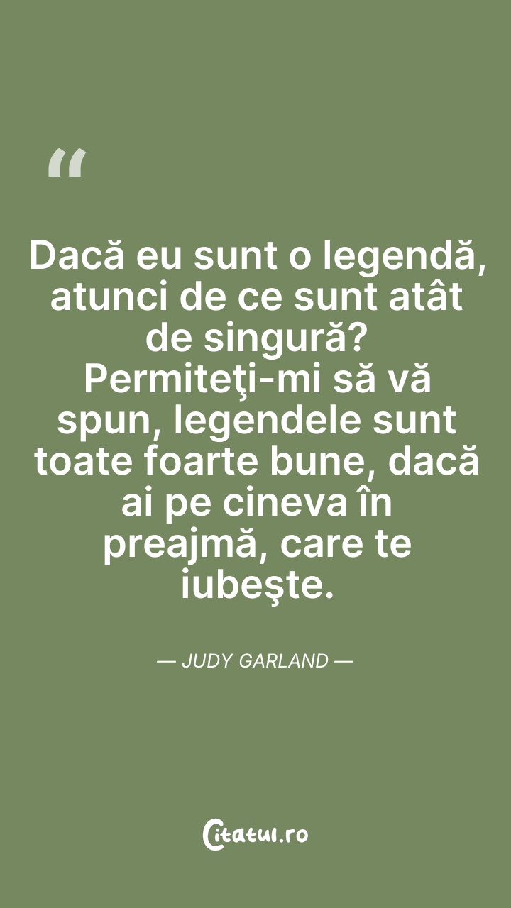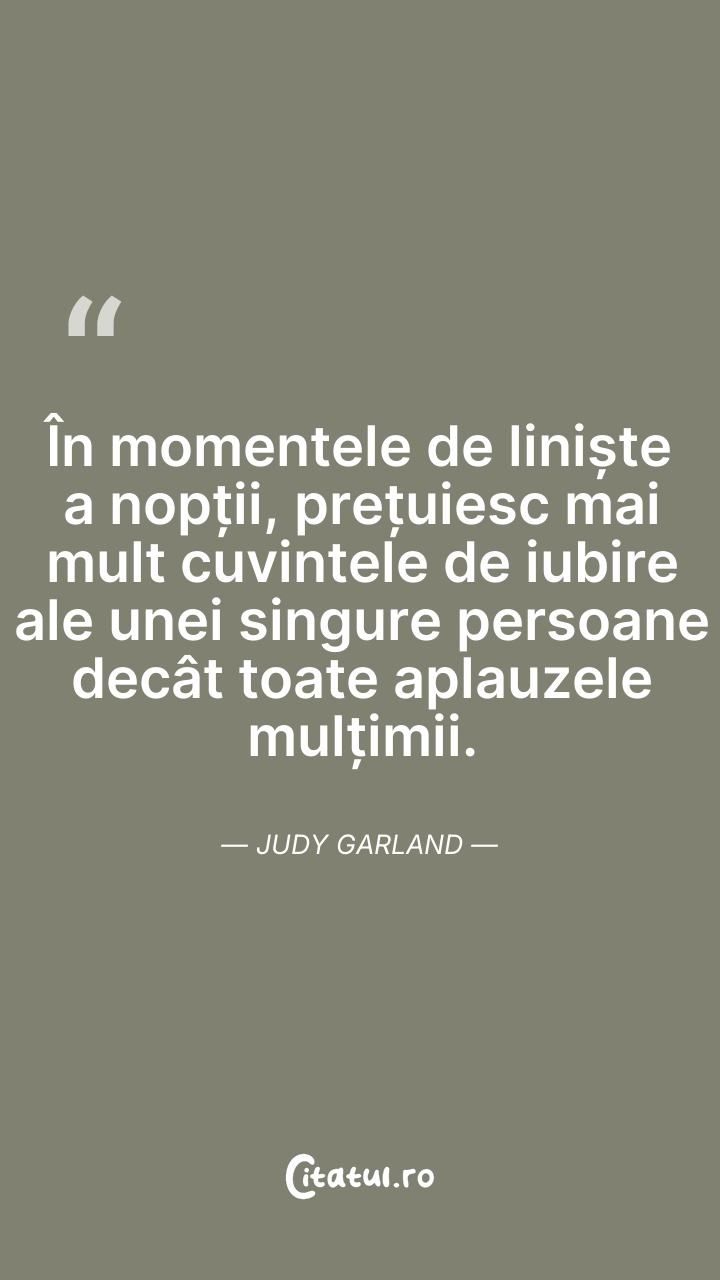 Judy Garland a fost o cântăreață și actriță de film americană. S-a născut în Grand Rapids, Michigan, în familia unor artiști de vodevil. A apărut pe scenă la vârsta de trei ani, împreună cu cele două surori mai mari, în „The Gumm Sisters Kiddie Act”. Și-a schimbat numele de scenă în „Garland”, când avea nouă ani, iar un an mai târziu, a devenit „Judy”. A fost angajată la vârsta de 13 ani, la studiourile MGM de către Louis B. Mayer. În 1936 apare în Every Sunday, fiind pe prima pagină a ziarelor pentru rolul din Broadway Melody of 1938. Cel mai mare succes i l-a adus Vrăjitorul din Oz (1939), pentru care a câștigat un premiu special al Academiei. Înainte de a deveni dependentă de barbiturice (1943), ea a mai realizat încă șapte filme. Între 1941-1951 a avut două căsnicii: cu șeful trupei David Rose și cu Vincente Minnelli, impreună cu care a realizat Meet me in St. Louis (1944), The Clock (1945), Ziegfeld Follies (1946) și The Pirate (1947). Cu acesta din urmă a avut o fiică, Liza, născută în 1946. În 1951, a fost concediată de la MGM, încercând să se sinucidă. A ajutat-o cel de-al treilea soț, Sid Luft, cu care a avut doi copii, care i-a organizaat apariții strălucitoare în concerte la Londra și New York. În 1954, apare în renumitul A Star is Born. După concertul de la Carnegie Hall, din 1961, Judy a mai făcut doar patru filme, printre care I Could go on Singing (1963). Pentru scurt timp mai fost căsătorită cu Mark Herron (1965) și Mickey Deans (1968). A fost huiduită la o stagiune din Londra, murind anul următor de o supradoză de somnifere. Cu o carieră de peste 45 de ani, a atins statutul de star internațional atât datorită musicalurilor cât și rolurilor sale dramatice, fiind recunoscută și ca solistă. În 1940, i-a fost acordat Premiul Juvenil al Academiei. A câștigat un Glob de Aur și un Premiu Tony Special. Garland a fost prima femeie care a câștigat Premiul Grammy pentru cel mai bun album al anului, pentru înregistrarea live din 1961, Judy at Carnegie Hall.