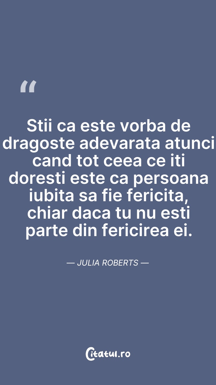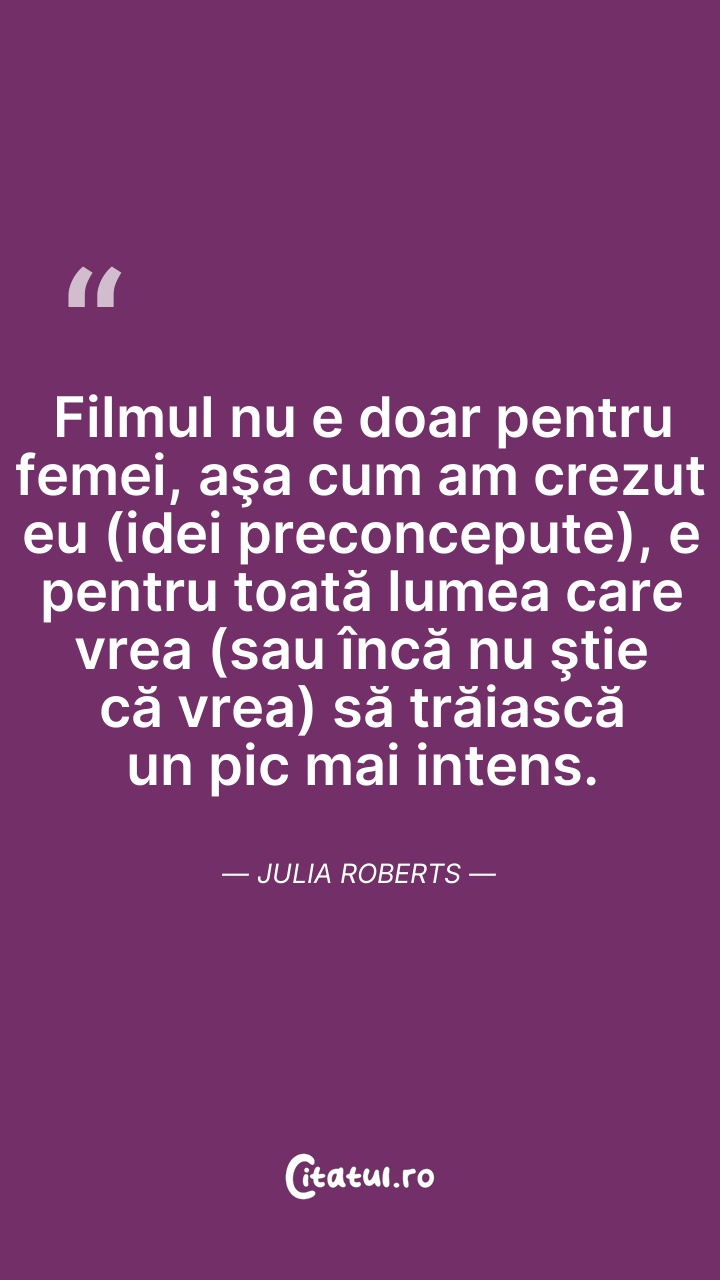 Julia Fiona Roberts este o actriță americană. Cunoscută pentru rolurile principale din diverse genuri, ea a primit numeroase distincții, printre care un Premiu Oscar, un Premiu al Academiei Britanice de Film și trei Premii Globul de Aur. A devenit cunoscută pentru interpretarea unor personaje empatice și fermecătoare în comedii romantice și blockbustere, înainte de a se orienta către drame, thrillere și filme independente. Filmele în care a jucat au încasat în total peste 3,9 miliarde de dolari în întreaga lume, făcând-o una dintre cele mai profitabile vedete de la Hollywood, în timp ce mass-media i-a dat porecla „America's Sweetheart”, în semn de recunoaștere a popularității și a carismei sale.