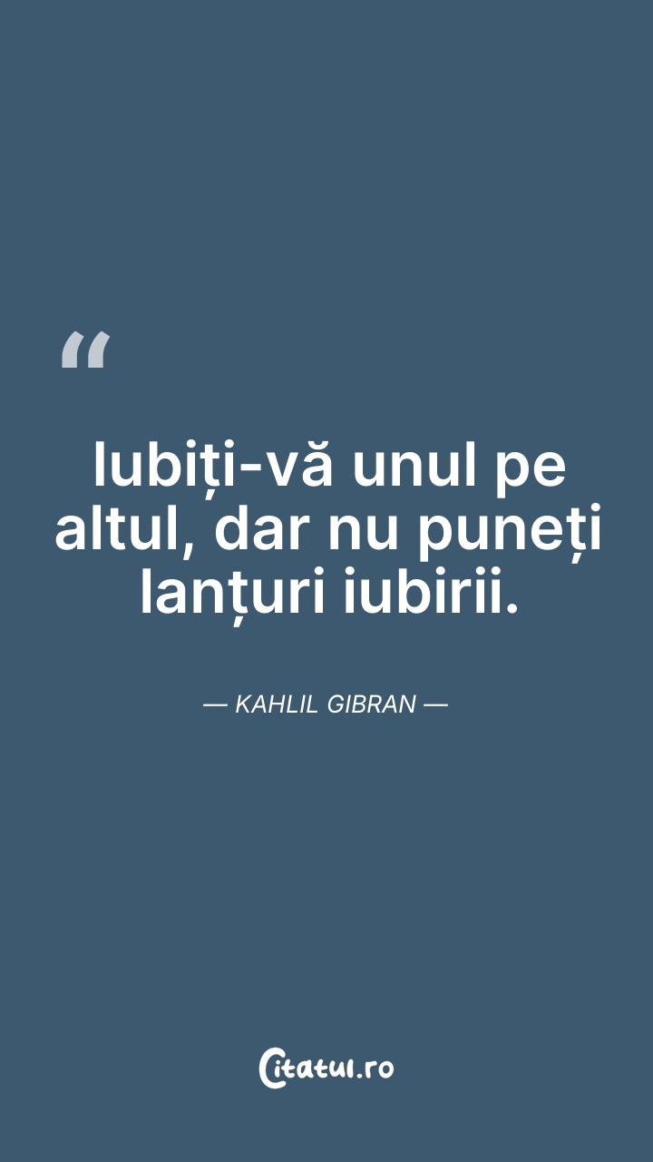 Iubiți-vă unul pe altul, dar nu puneți lanțur ... Citește tot citatul >